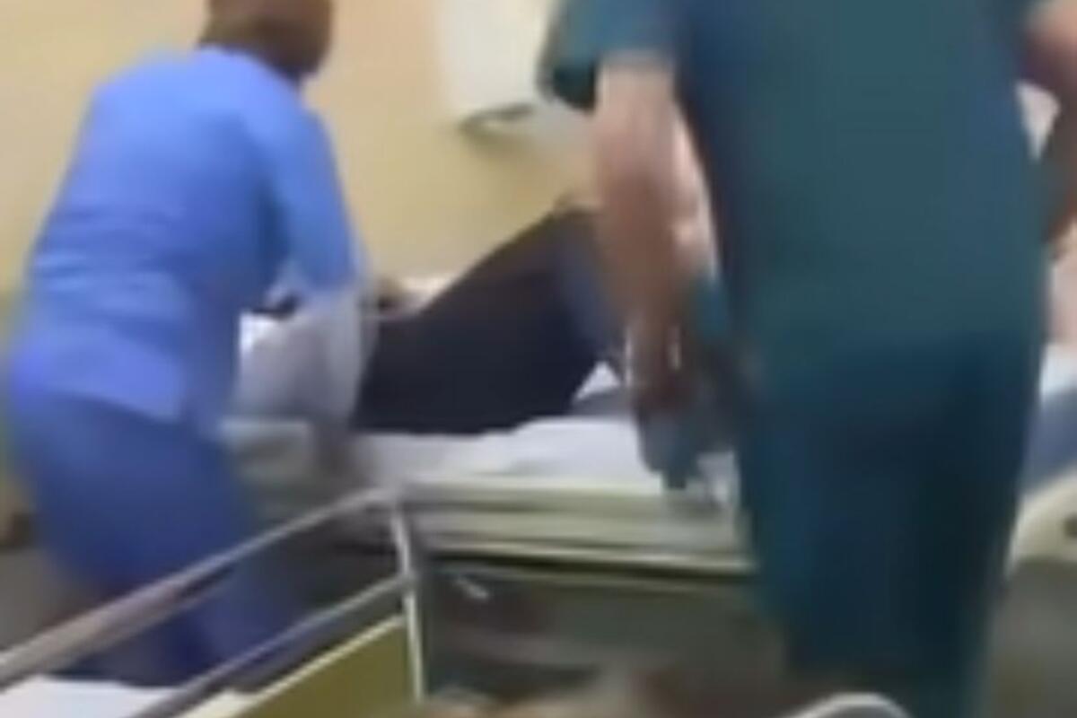 Na snimku se vidi kako medicinsko osoblje udara starca, a kada on pokuša da se nasloni na drugi krevet da ustane, oni počinju burno da reaguju i negoduju.