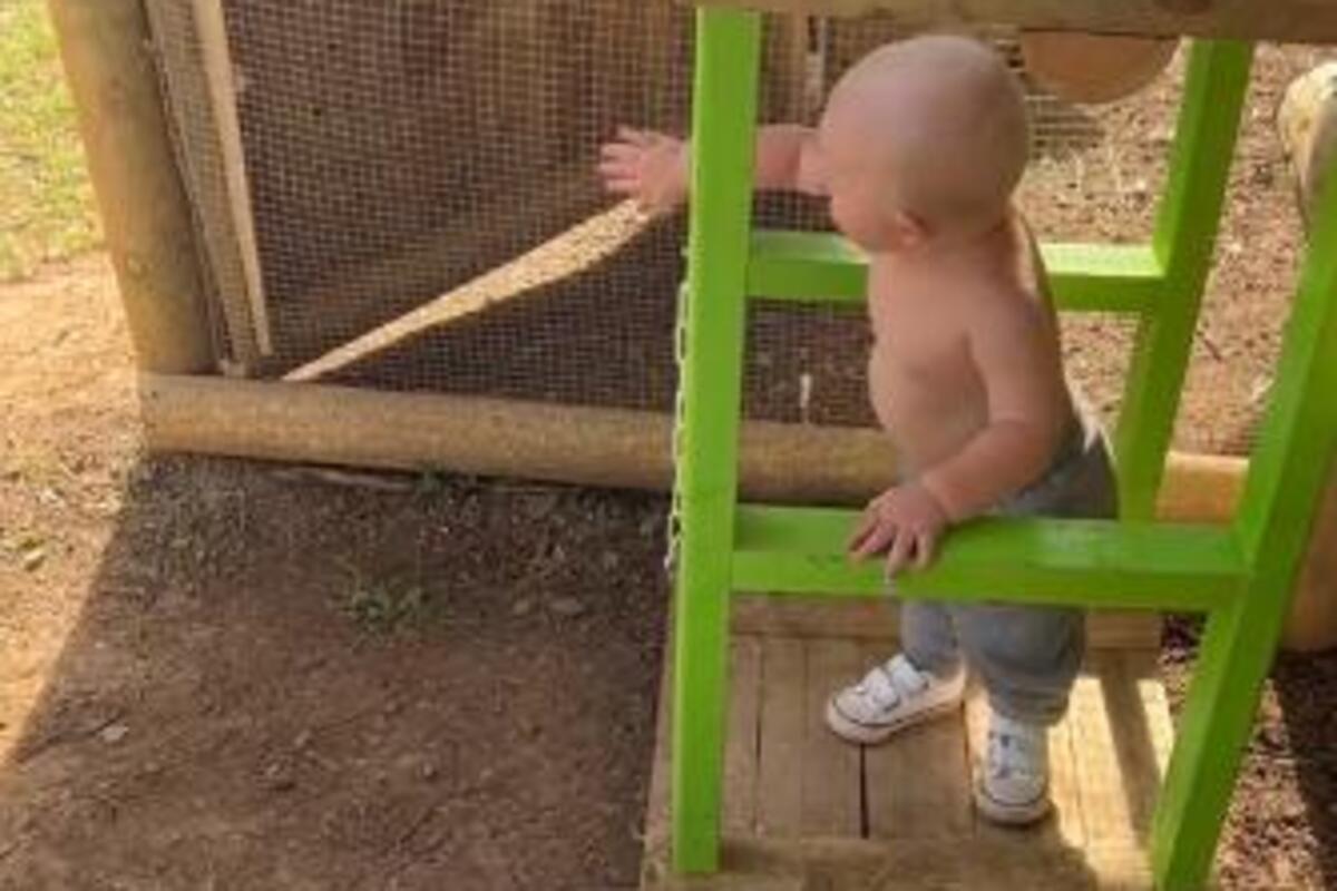 Ta kućica je zapravo drvena platforma izdignuta od zemlje, ali za dečaka je poput dvorca na koji se penje sa ogromnim osmehom.