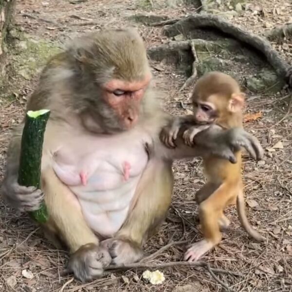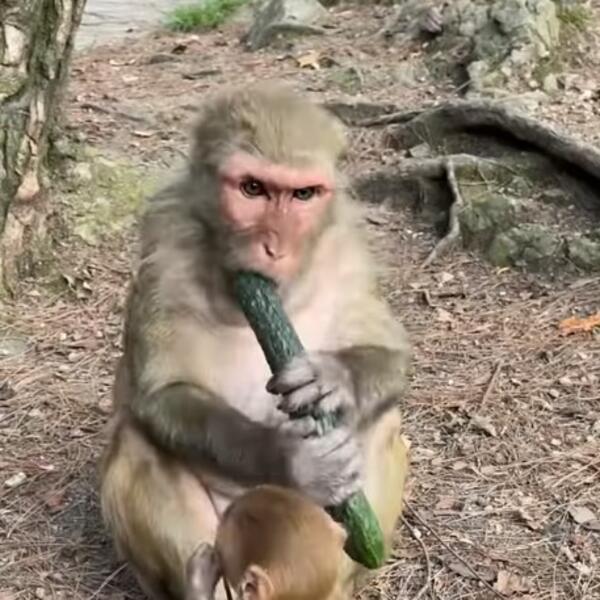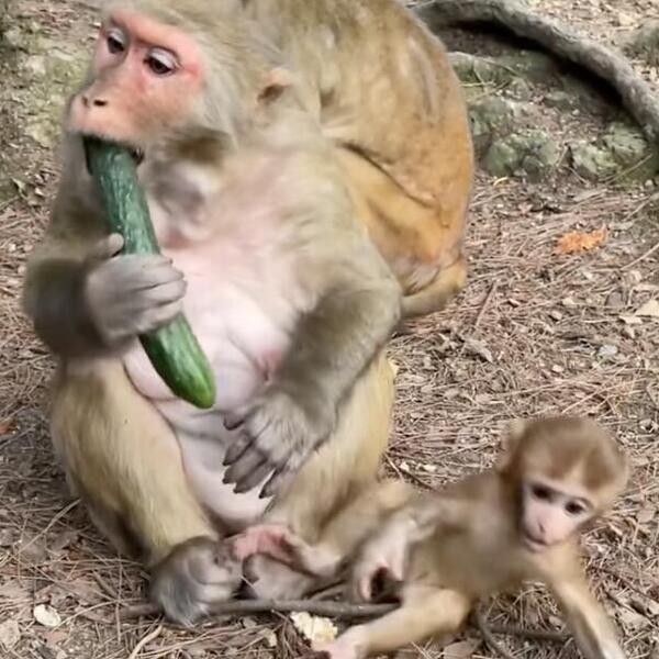 Na snimku možemo videti ženku majmuna i mladunče koje je "nervira" i pokušava da ukrade krastavac koji jede. Snimak je brzo skupio mnogo lajkova i komentara.