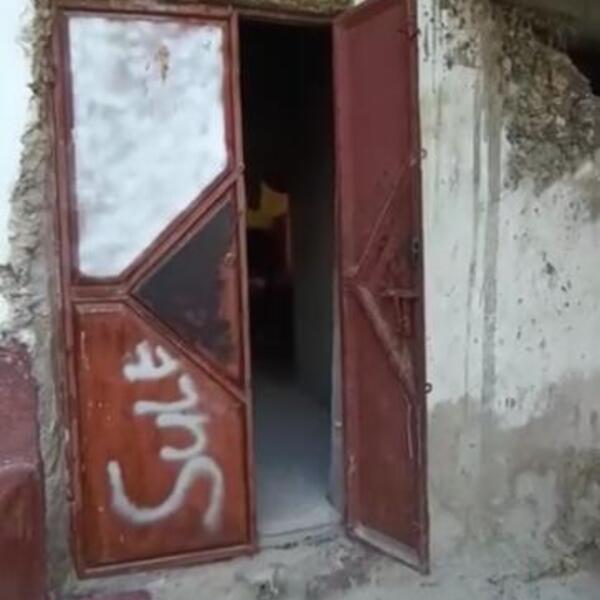 Unutar kuće nalazi se i reklama za taksiste i turističke ponude, napisana plavom bojom po zidovima.