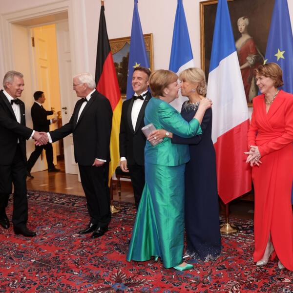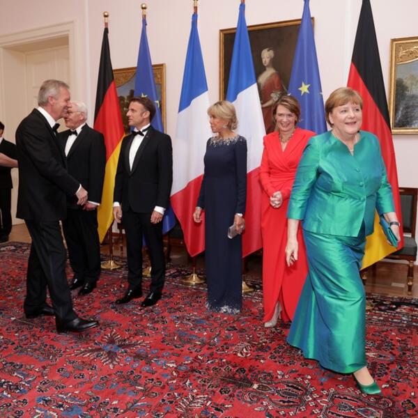 Juče je u dosad neviđenoj modnoj kombinaciji i paleti boja viđena na džavnom banketu u čast francuskog predsednika Emanuela Makrona i njegove supruge Brižit Makron u palati "Bellevue" u Berlinu.