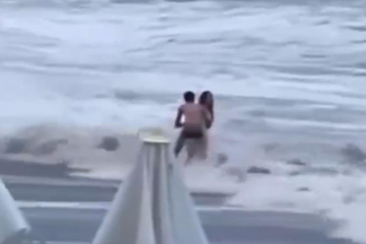 Međutim, drugi talas poklopio ih je oboje i odvukao mladića više prema plaži, dok je devojku odneo i ona je nestala u vodi.