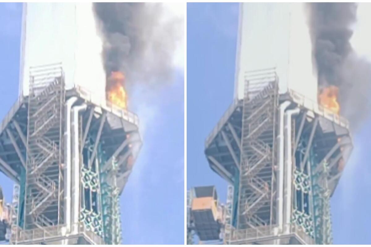 Slike na društvenim mrežama pokazuju kako plamen isijava iz nečega što liči na nadstrešnicu skele u blizini vrha zgrade.