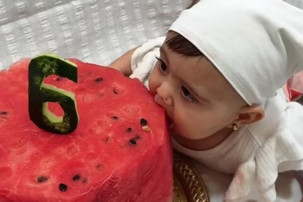 Ova beba je za svojih šest meseci dobila specijalnu tortu, koja je ustvari lubenica, al ona za to nije marila već ju je grickala kao da je najslađi kolač