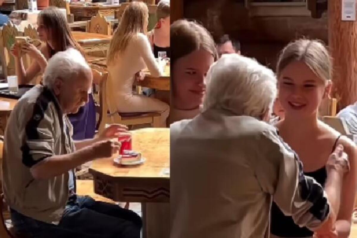 Ovu scenu posmatrale su tri devojke za stolom pored, a ovo ih je toliko rastužilo da su poželele da urade nešto lepo za usamljenog deku.