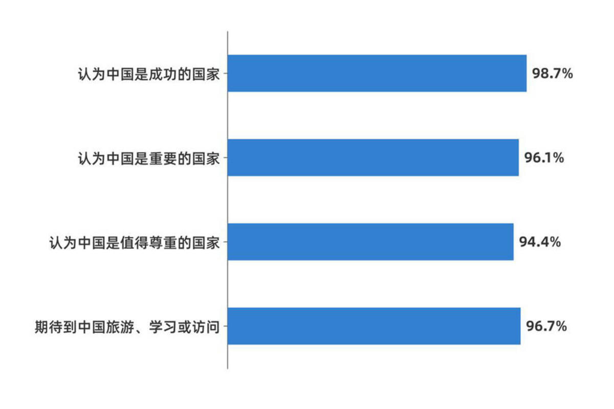 Istraživanje je pokazalo da mladi ispitanici generalno imaju veoma povoljan utisak o Kini. Čak 98,7 odsto mladih Afrikanaca vidi Kinu kao uspešnu zemlju. Njih 96,1 odsto smatra da je Kina važna zemlja, a 94,4 odsto veruje da je Kina zemlja vredna poštovanja. Čak 96,7 odsto mladih Afrikanaca očekuje da će imati priliku da putuje, studira ili posećuje Kinu u budućnosti.