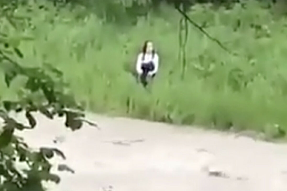 Na snimku se vidi i čuje kako mladići devojčici viču "Stoj, stani, sačekaj", dok ona stoji na obali nabujale reke.