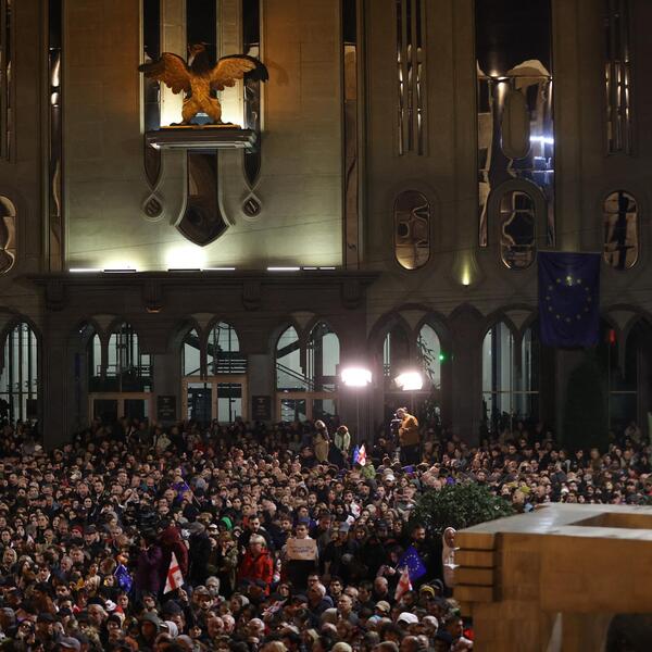 Desetine hiljada stanovnika Gruzije okupilo se večeras ispred zgrade parlamenta u glavnom gradu Tbilisiju, tražeći poništenje izbora za čije je rezultate predsednica države Salome Zurabičivili rekla da su namešteni u korist vladajuće partije Gruzijski san - uz pomoć Rusije. Ovaj skup je produbio političku krizu u južnokavkaskoj zemlju u kojoj Gruzijski san postaje sve autoritarniji i naklonjeniji politici Moskve.