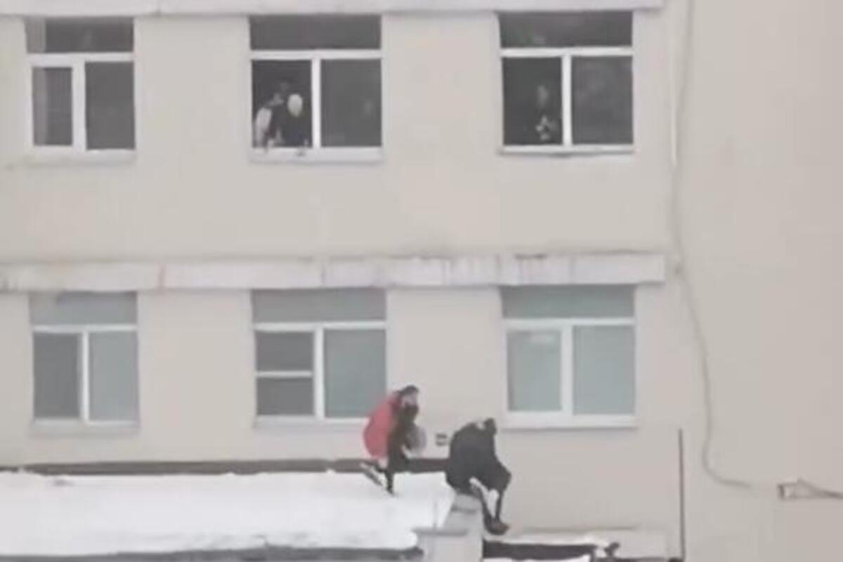 Na snimku na društvenim mrežama vidi se kako ljudi skaču sa prozora na krov druge bolničke zgrade, koji je prekriven snegom.