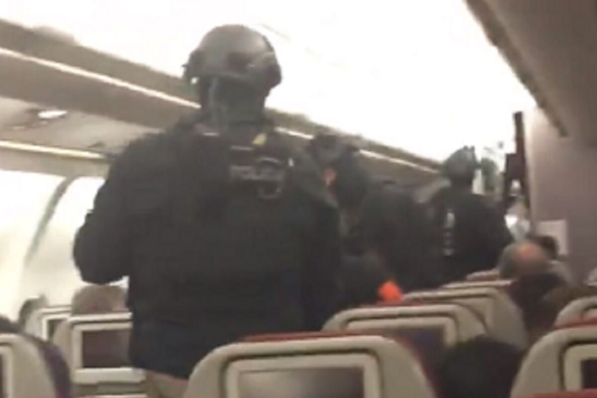 Teško naoružani pripadnici policije ušli su u prizemljeni avion nešto pre ponoći po lokalnom vremenu i uhapsili muškarca koji je izazvao paniku.