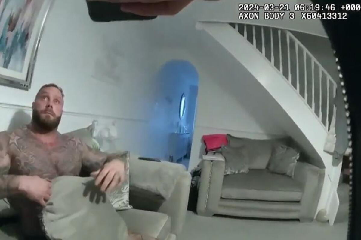Slika sa kamere na uniformi policajca u Kentu prikazuje Horna kako seda na svoj kauč i grabi jastuk da se pokrije