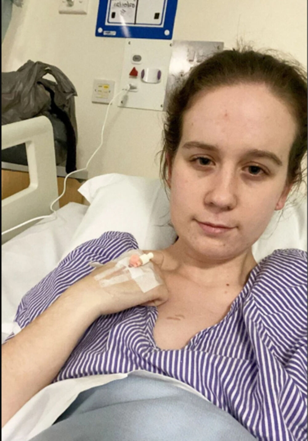 Pregled skenerom pokazao je da je u bešici bio litar urina što je otprilike četiri puta više od maksimalnog kapaciteta. Postavili su joj kateter nakon što je osetila bol kao da je "ubodena u taj deo tela".