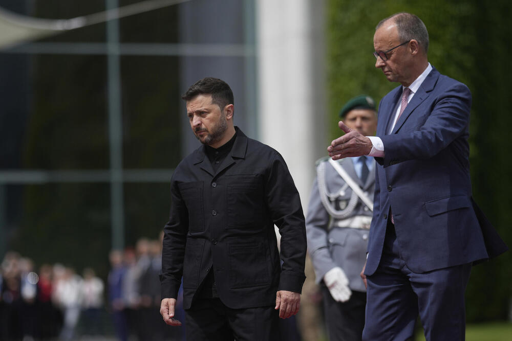 Predsednik Ukrajine Volodimir Zelenski, prilikom dolaska u Berlin na sastanak sa nemačkim kancelarom Fridrihom Mercem, pojavio se u crnoj odeći sa sakoom koji je podsećao na zatvorsku uniformu.