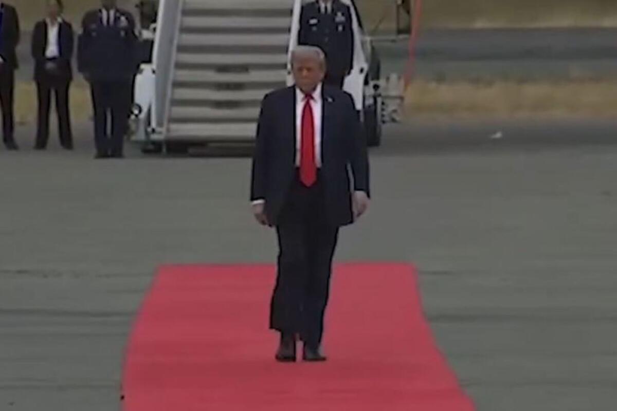 Tramp je podigao obrve u trenutku kada je izašao iz aviona na Aljasci, ne žureći sišao niz stepenice, a zatim je izgledalo kao da se tetura po crvenom tepihu koji je bio postavljen na pisti.