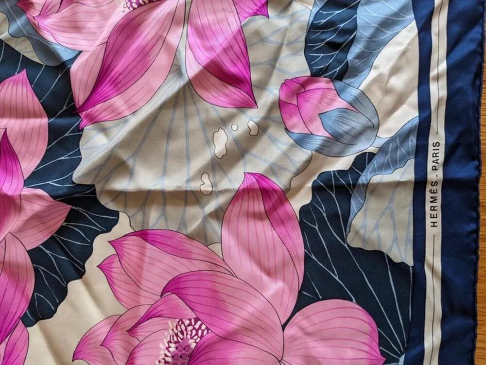 Fotografija na kojoj se vidi svilena marama sa cvetnim printom u roze, crnoj i plavoj boji, zajedno sa etiketom koja potvrđuje da je napravljena u Francuskoj, postala je prava senzacija.