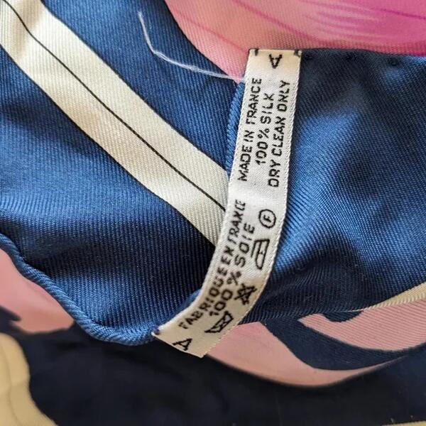 Fotografija na kojoj se vidi svilena marama sa cvetnim printom u roze, crnoj i plavoj boji, zajedno sa etiketom koja potvrđuje da je napravljena u Francuskoj, postala je prava senzacija