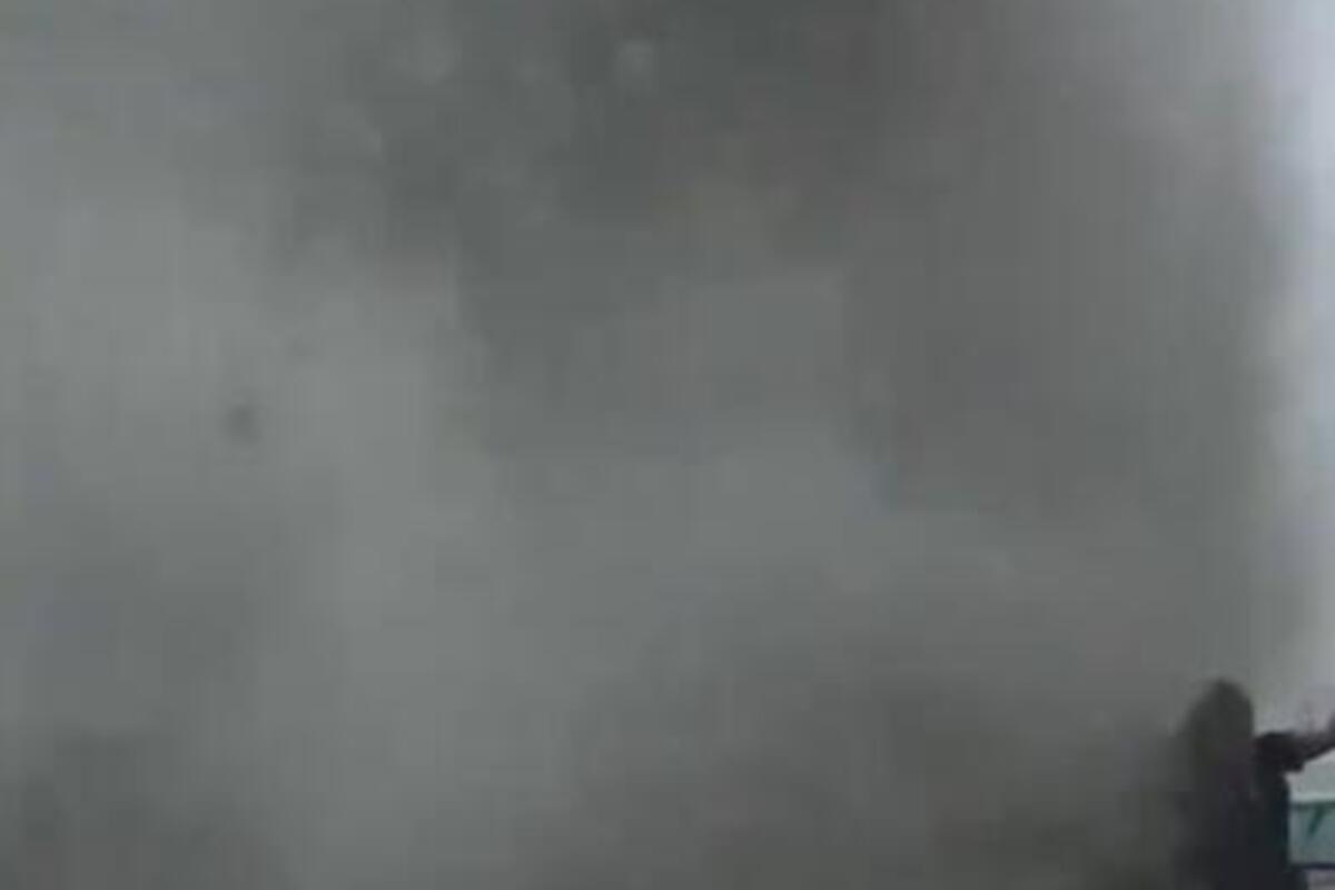 Stravičan snimak je napravljen u distriktu Saut Horajzons u Hongkongu i prikazuje tri osobe ljudi kako oprezno odstupaju od obale dok se ogroman talas uzdiže visoko iznad njih prenosi Daily Mail.