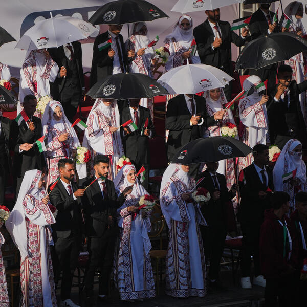 U južnom delu Gaze održana je ceremonija masovnog venčanja na kojem su u brak stupila 54 para.