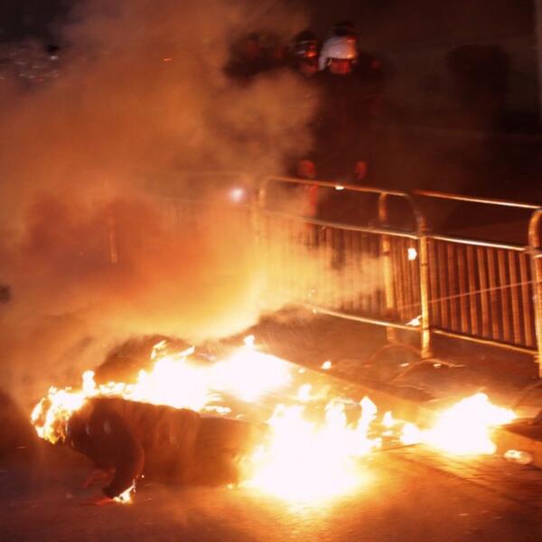Dok su demonstranti bacali Molotovljeve koktele, policija u opremi za razbijanje demonstracija štitila je zgradu vlade, ali nije uspela da potisne demonstrante.