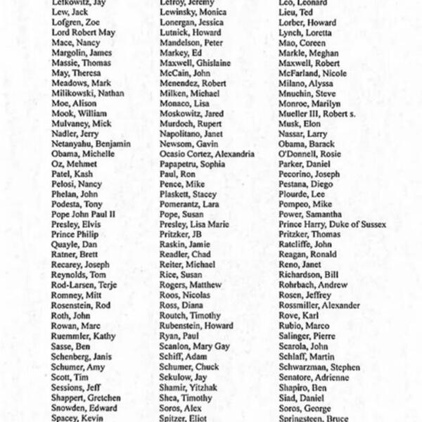 Ovo je prvi put da su Bondi (60) i njen tim podelili podugačak spisak imena i naveli sve koji se pojavljuju barem jednom, poređane abecednim redom - od Aleksandra Akoste (američki advokat i političar) do Paola Zampolija (američki biznismen).
