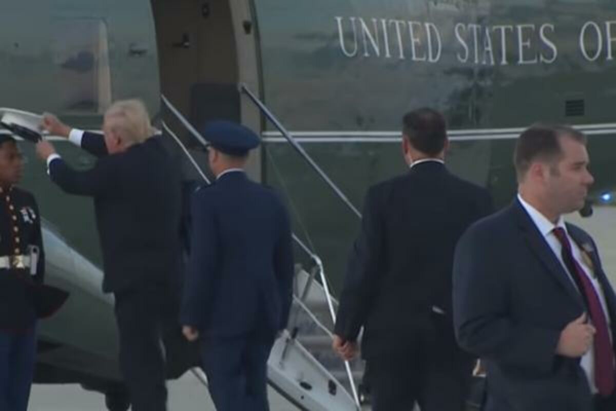 Ovoga puta, još jedan snimak postao je popularan na društvenim mrežama, a može se videti Tramp kako se bori sa vetrom. On je imao dobru nameru da jednom marincu vrati kapu koja je odletela zbog jakog vetra. I tu je onda počeo pravi šou.