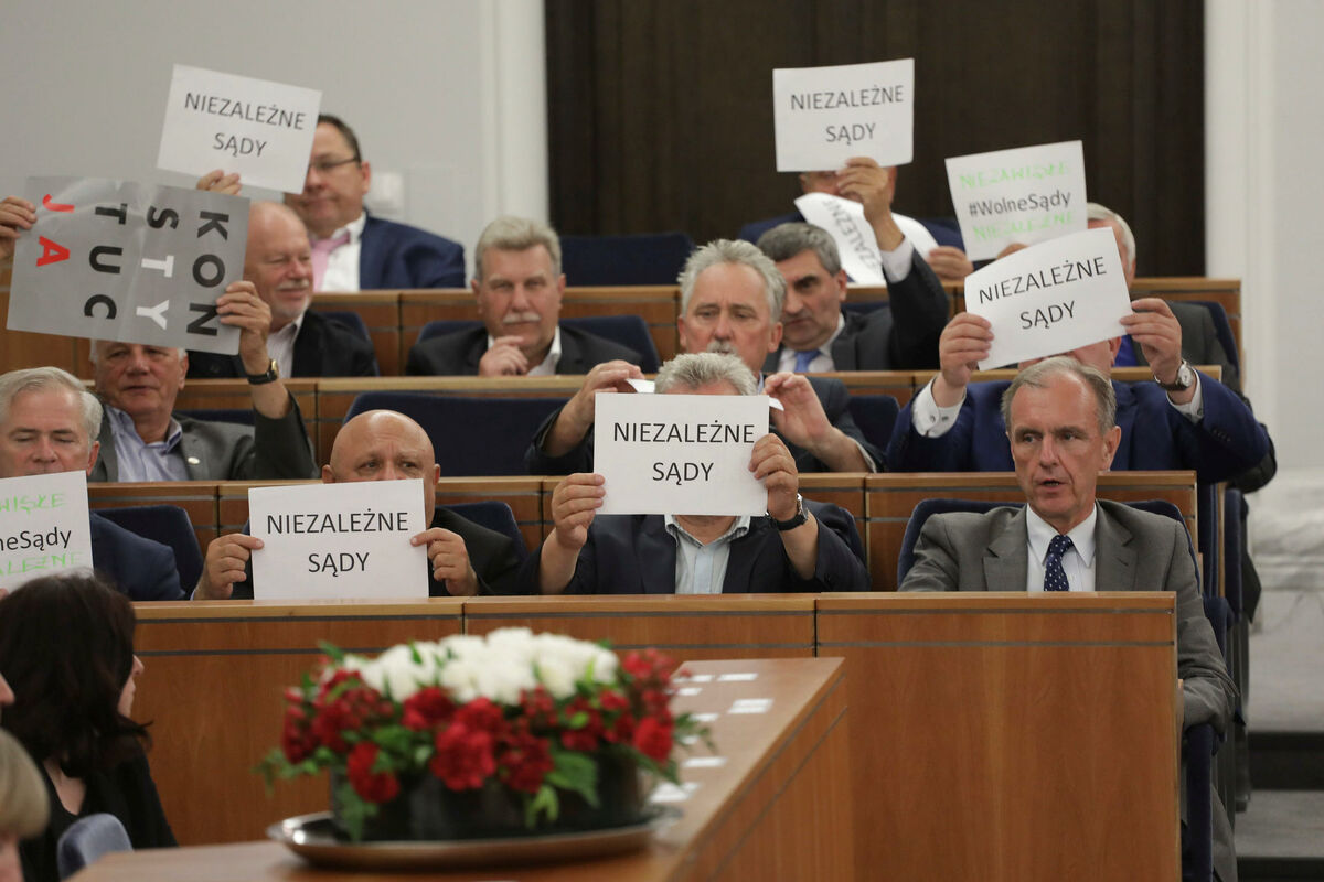 Uz uzvike "ako izglasate nećete izaći" demonstranti su pokušali da spreče da parlament inače okružen metalnim barijerama i jakim kordonom i snagama policije napuste senatori vladajuće stranke Pravo i Pravda, dok su propuštali sentore opozicije i zaposlene