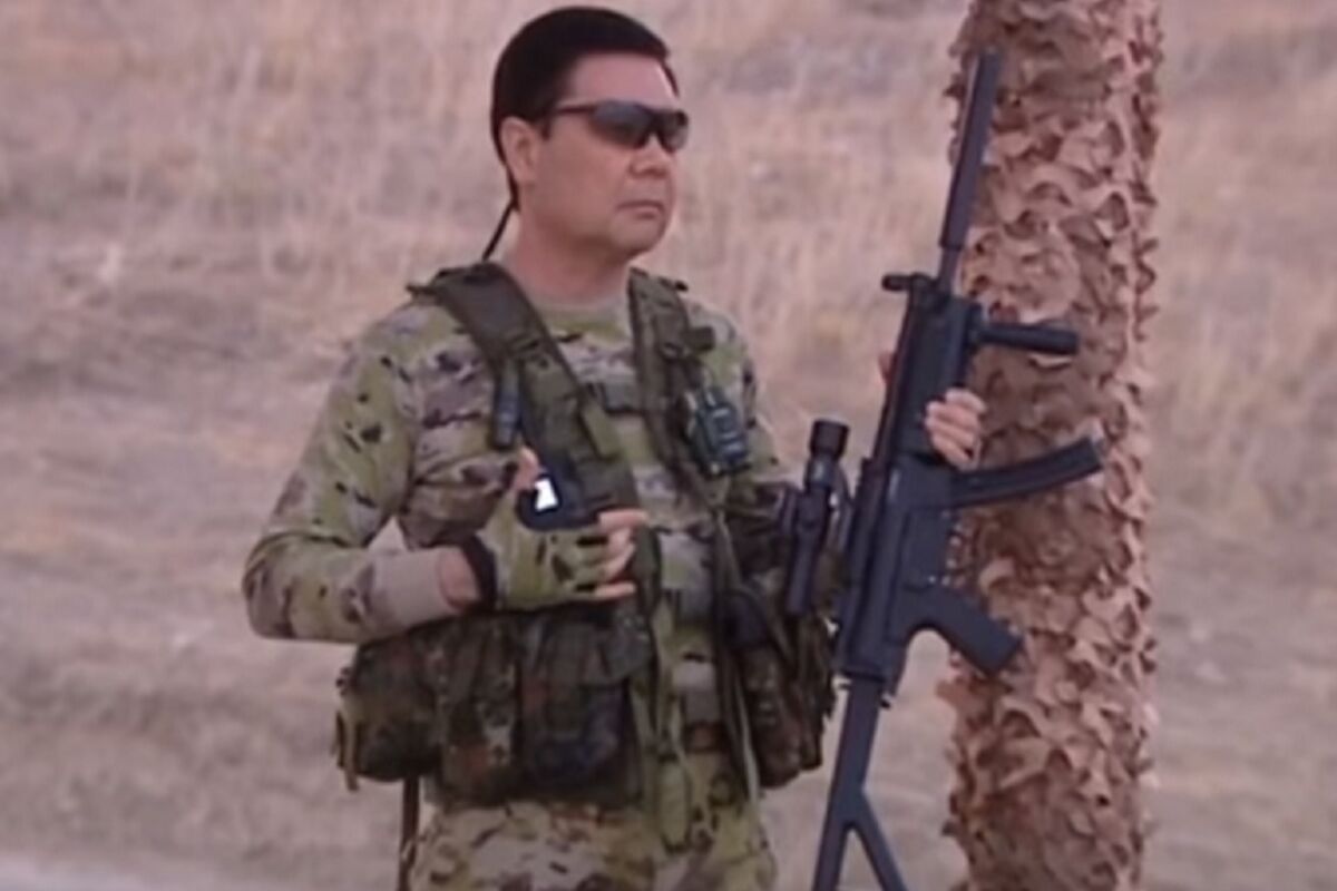 JAČI OD PUTINA, A I VULIN BI SE ZABRINUO: Predsednik Turkmenistana puca iz pištolja i baca nož kao Rambo! (VIDEO)
