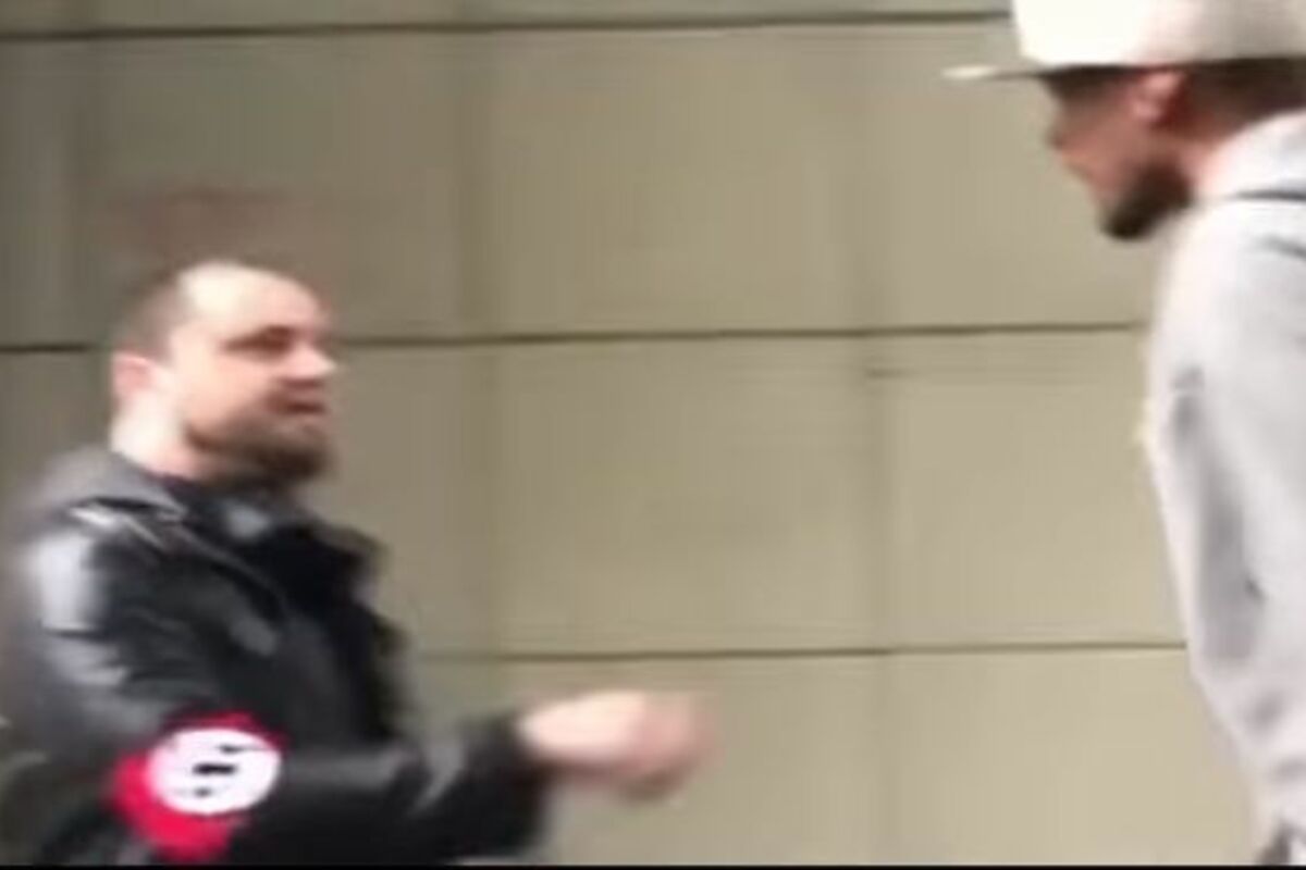 POLOMIO MU JE VILICU OVIM UDARCEM: Momci iz ANTIFA sreli su tipa sa kukastim krstom koji je maltretirao crnce... (VIDEO)