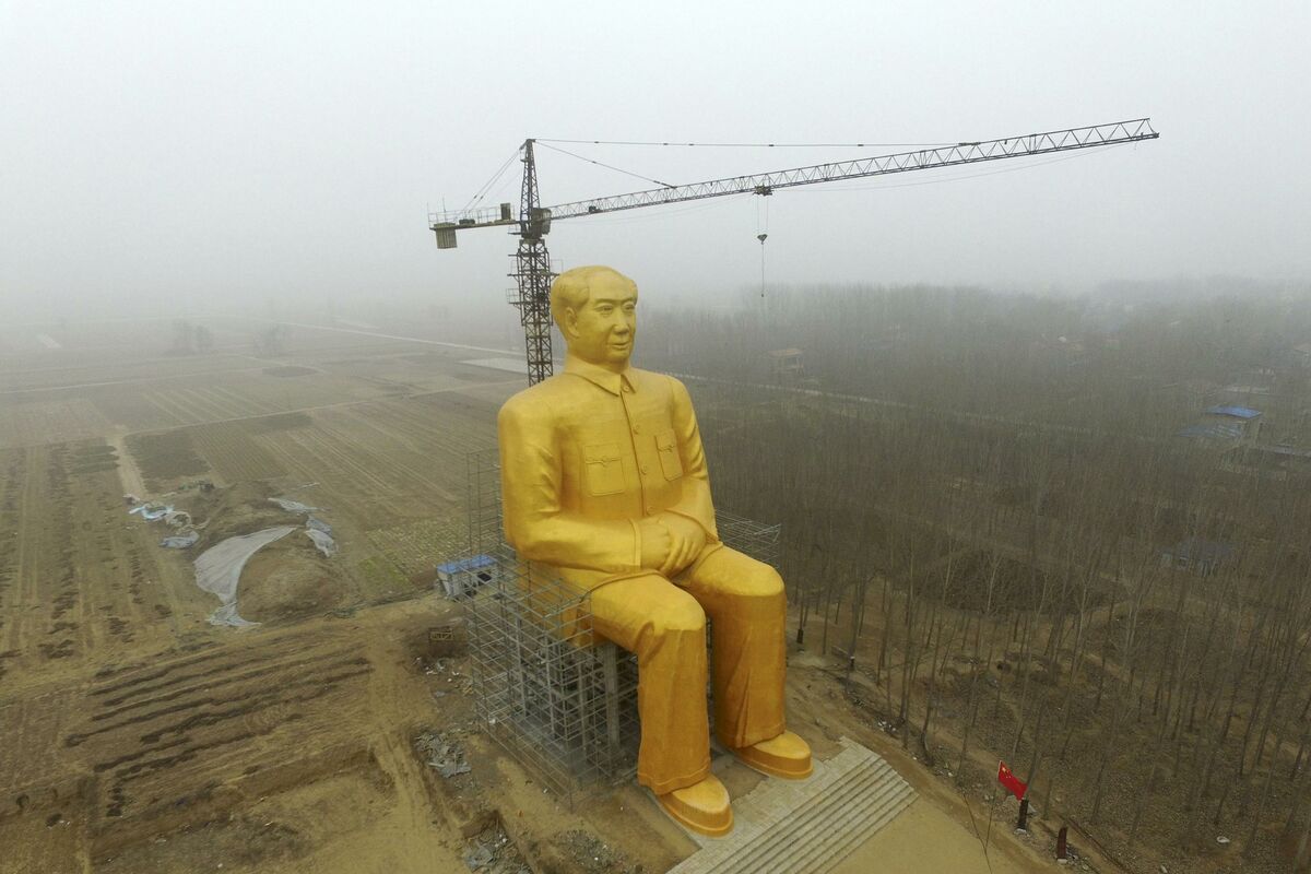 Ogromna zlatna statua pokojnog kineskog vođe, vredna tri miliona juana, odnosno 460.000 dolara postavljena je kraj grada Kajfeng u provinciji Henan.