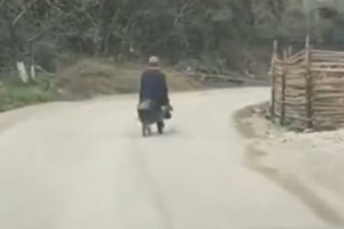 Deda jaše prase, Foto: Printscreen/Liveleak
