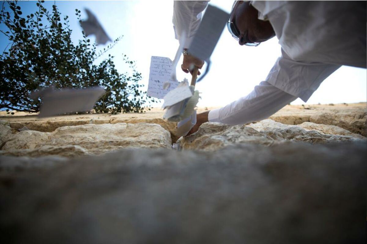 Poruke su drvenim štapovima pažljivo istisnute iz pukotina drevnog zida da se sklone na mesto gde se čuvaju sveti verski tekstovi na Maslinovoj Gori.