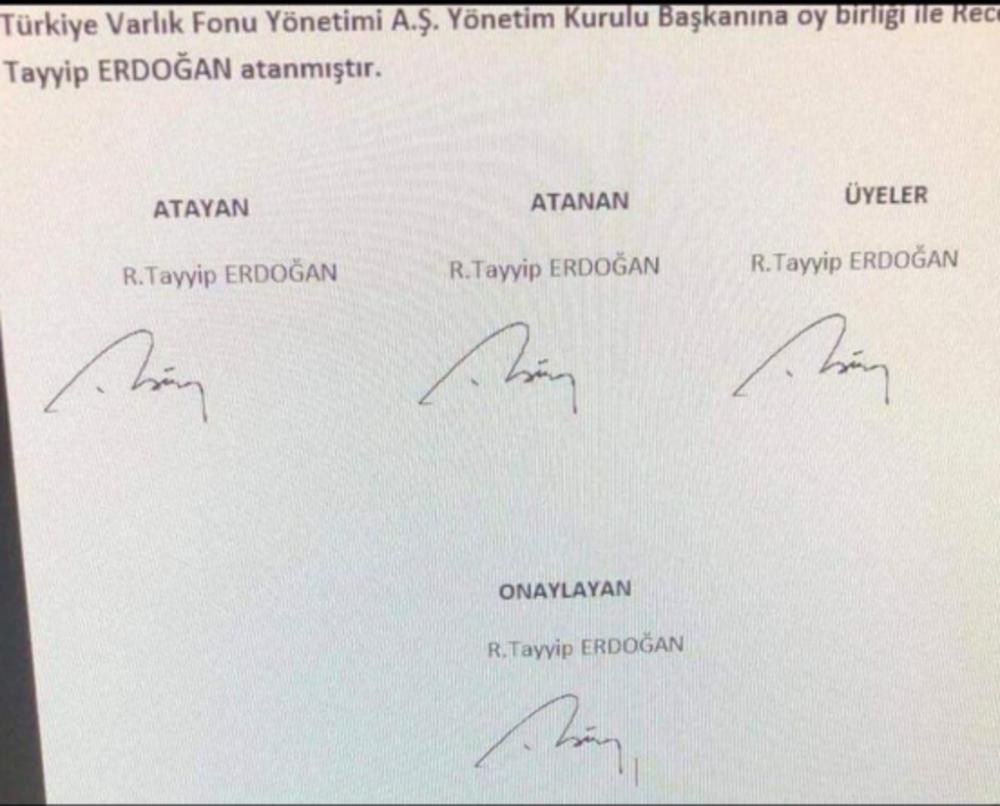 ERDOGAN ODOBRAVA ERDOGANA KOJI POTPISUJE, A I ERDOGAN JE I PREDSEDNIK FONDA VREDNOG 200 MILIJARDI DOLARA: Četiri ista potpisa na jednom dokumentu!