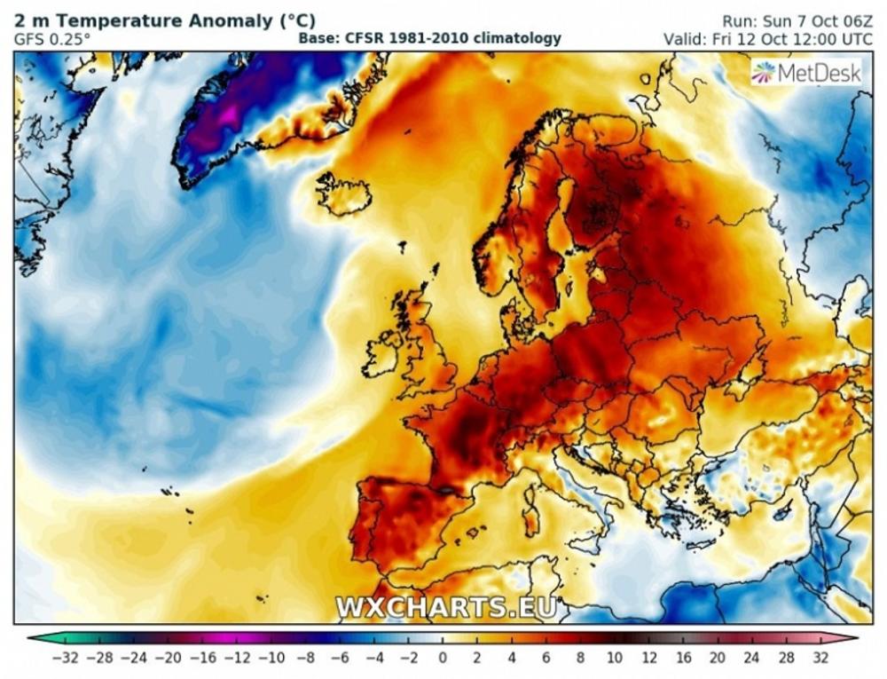 Kako piše servis Severe Weather Europe, do sredine i kraja nedelje veliki delovi Evrope beležiće 7-10 stepeni više temperature od proseka za ovo doba godine. Očekuje se da će temperature rasti do 25 stepeni Celzijusovih na području središnje Evrope i Balkana, dok bi se u Španiji i Portugalu mogle popeti i do 30 stepeni. Vikend bi mogao da bude ekstremno topao u delovima Skandinavije - očekuje se da će biti i do 15 stepeni toplije od proseka!