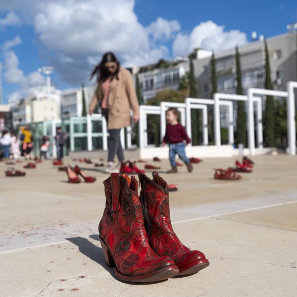 U Tel Avivu aktivisti su stavili na trg oko 200 cipela obojenih u crveno koje simbolizuju nasilje nad ženama.