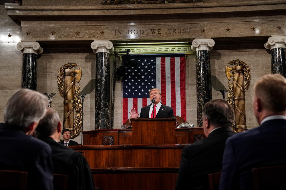 - U Americi je na delu ekonomsko čudo koje mogu zaustaviti samo glupi ratovi, politika ili smešne stranačke istrage. Želimo li mir i donošenje zakona, onda nema ratovanja i sprovođenja istraga, rekao je Tramp, aludirajući na istragu specijalnog tužioca Roberta Milera o ruskom uticaju na njegovu izbornu pobedu, a koju on smatra "lovom na veštice". Aludirao je i na niz istražnih aktivnosti koje su demokrati, sada kada imaju kontrolu nad Kongresom, najavili u odborima nadležnim za ova pitanja.
