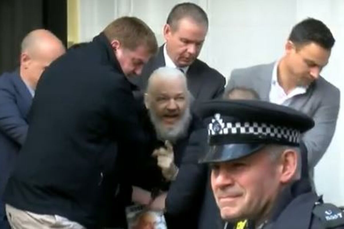 Asanža su na silu izneli iz ambasade Ekvadora, pre nogo što su ga strpali u policijski automobil.