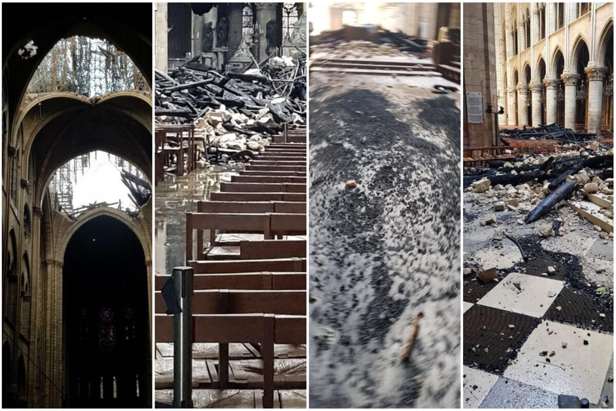 Pojavio se snimak unutrašnjosti katedrale, na kojem se vidi garež, pepeo i istopljene i uništene istorijske dragocenosti.