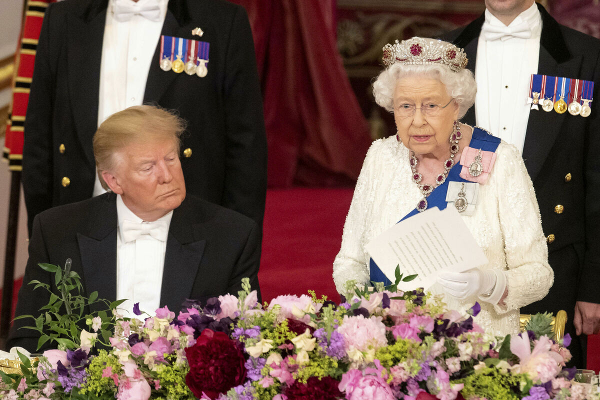 Raskošni banket koji je britanska kraljica Elizabeta Druga sinoć priredila u Bakingemskoj palati u čast prve državničke posete predsednika SAD Donalda Trampa, obeležile su njihove zdravice, ali je pažnju privukao i meni koji je ponuđen za više od 170 gostiju, uz vino koje košta oko 1.600 evra po boci.