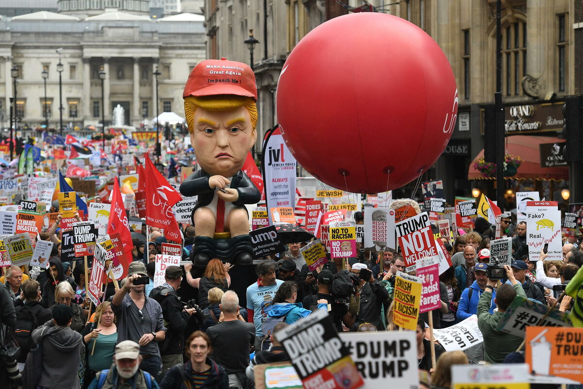 Pristalice i protivnici Trampa sukobili su se tokom marša od Trafalgar trga do parlamenta u centralnom Londonu. Mala grupa pristalica američkog predsednika bila je okružena demonstrantima u Vajtholu. Policija je intervenisala i povukla pro-Trampovu grupu u obližnji pab zbog njihove sigurnosti, jer su im vikali da su „nacistički ološ s naših ulica“.