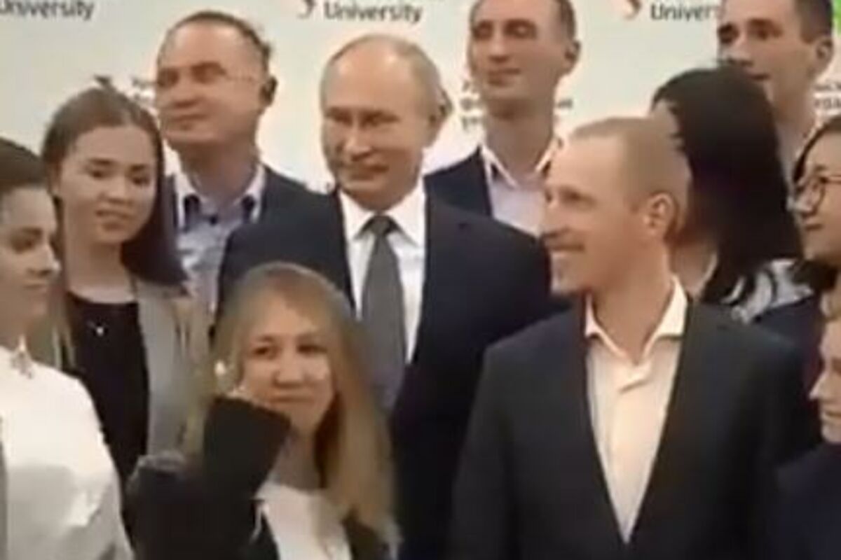 Naime, jedan od studenata, pokušao je da stane u prvi red ispred Vladimira Putina, zbog čega se on u tom slučaju ne bi video. Momak sa snimka poprilično je visok.
