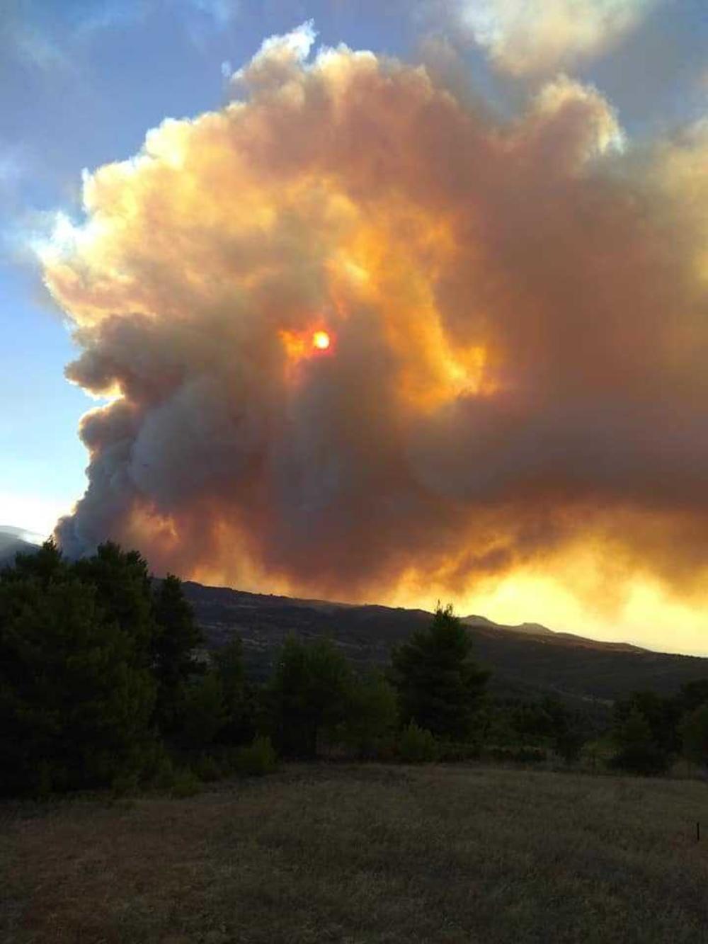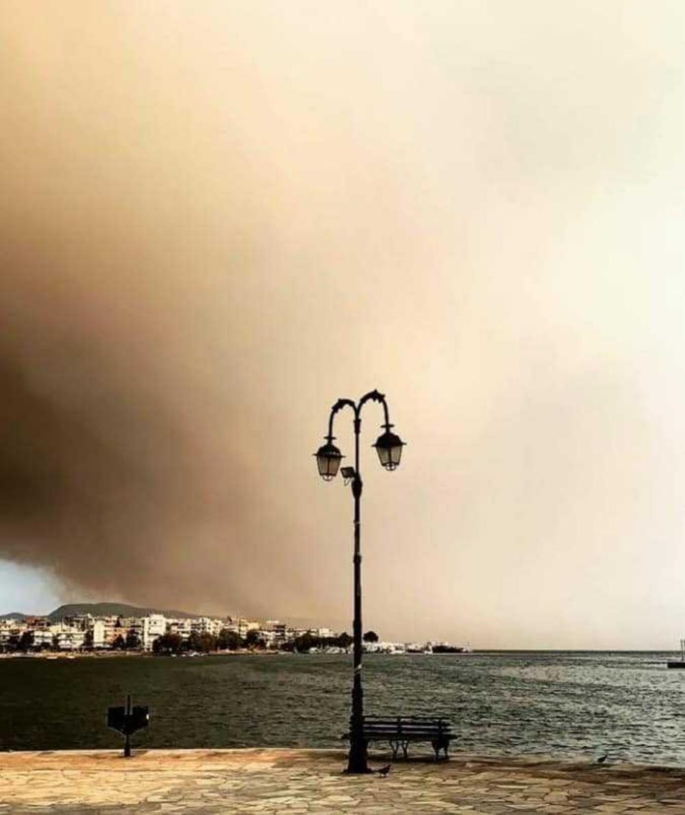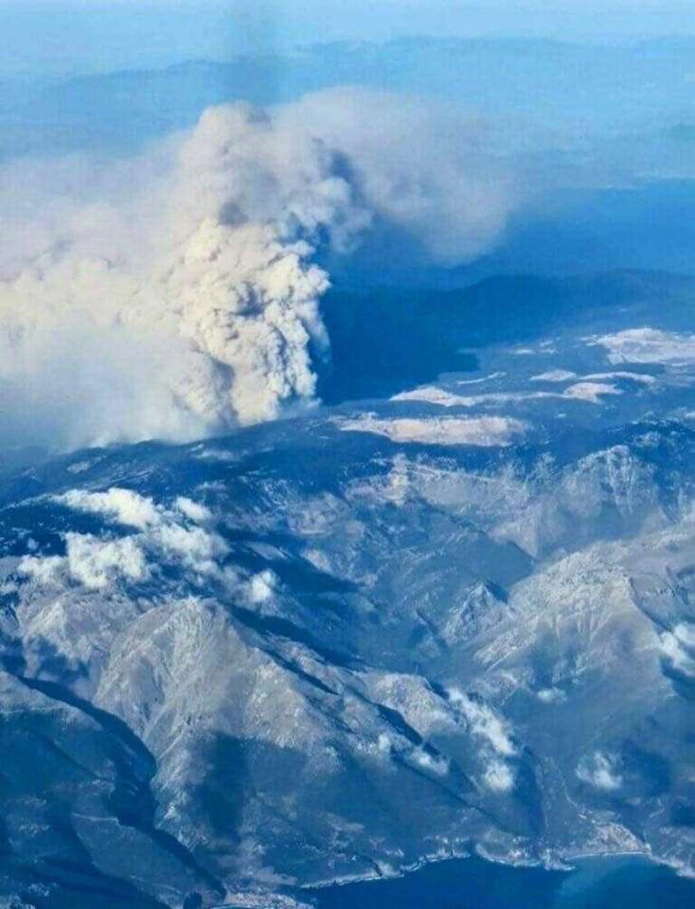 Grčka televizija objavila je snimke na kojima se videlo kako je gust, crni dim prekrio oblast, dok vetar raznosi pepeo kilometrima daleko.