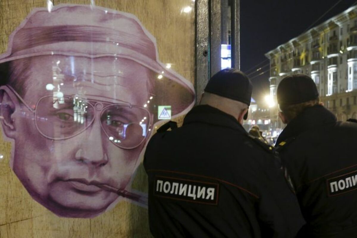 Poster ruskog predsednika Vladimira Putina sa naočarima za sunce i šeširom, kakve je nosio lik Džonija Depa u kultnom filmu "Paranoja u Las Vegasu", osvanuo je na jednoj autobuskoj stanici u Moskvi.