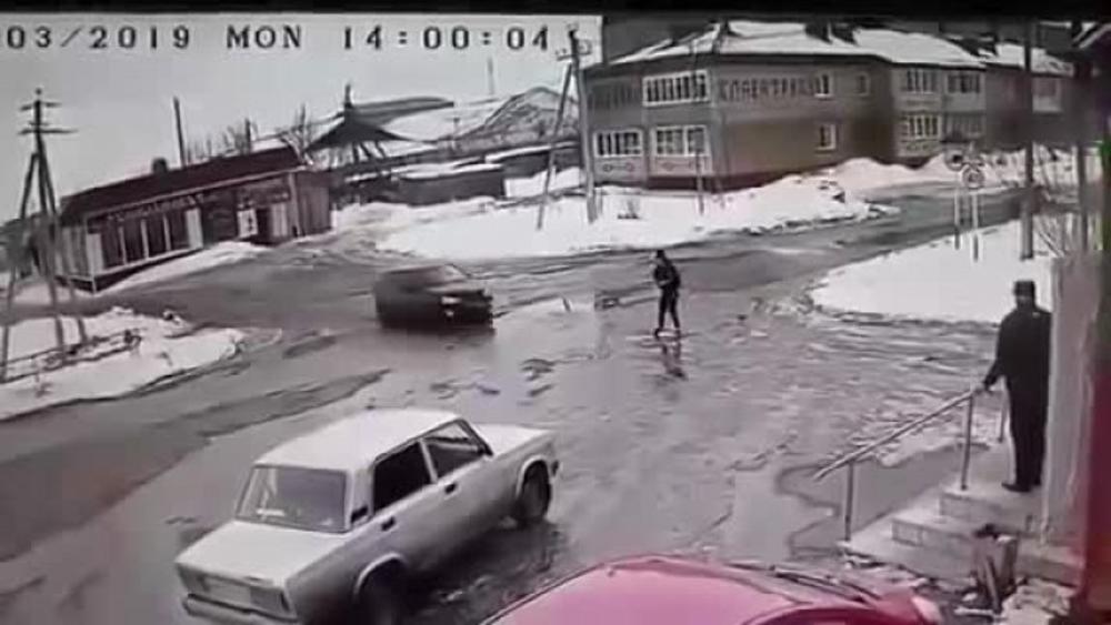 Na fotografijama se vidi kako žena stoji nasred ulice i razgovara mobilnim. Nekoliko sekundi kasnije prema njoj se velikom brzinom kreće automobil, ali ne usporava iako je vidi. Zabija se pravo u nju, a žena od siline udarca leti nekoliko metara u vazduh.