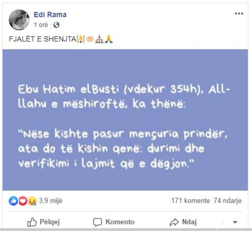 Albanski premijer Edi Rama nedavno je na svom Fejsbuku objavio drevnu izreku.