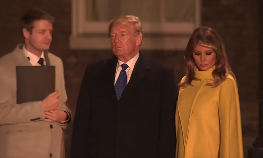 Snimak ispred Dauning strita 10 pokazuje kako Makron skoro nezainteresovan prolazi pored Trampa, a onda se uz širok osmeh okreće Melaniji i obema šakama uzima njenu ruku u stisak. Melanijin osmeh sve govori, dok Tramp u pozadi kipti od besa i kobajagi namešta revere na kaputu.
