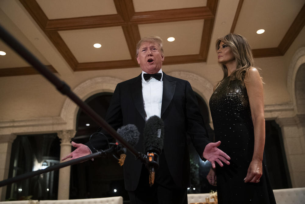 Prva dama Sjedinjenih Država Melanija Tramp blistala je u crno-zlatnoj kombinaciji. Ona je na istu proslavu stigla sa suprugom, koji je za ovu priliku obukao klasični smoking i stavio crnu mašnu.