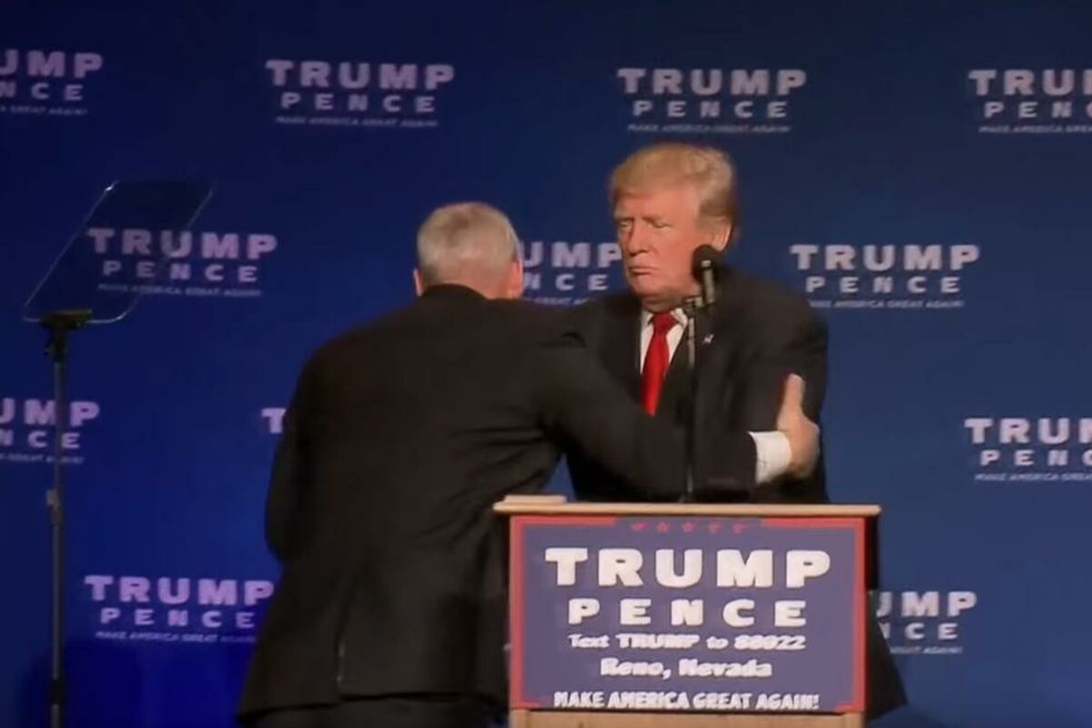 Na video snimku prikazan je stvarni događaj iz Nevade 5. novembra, na kojem je Tramp odveden sa bine iz straha da neko iz publike ima pištolj, a na lažnom snimku vidi se kako napadač puca u Trampa, koga nakon toga sklanjaju sa podijuma, piše britanski Dejli mejl.