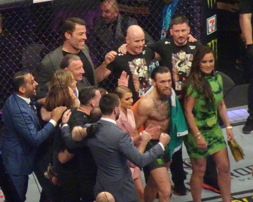 Nakon ekspresno završene borbe, sve oči su bile uprte u MekGregorovu suprugu Di Devlin koja je uletela na teren i priključila se slavlju