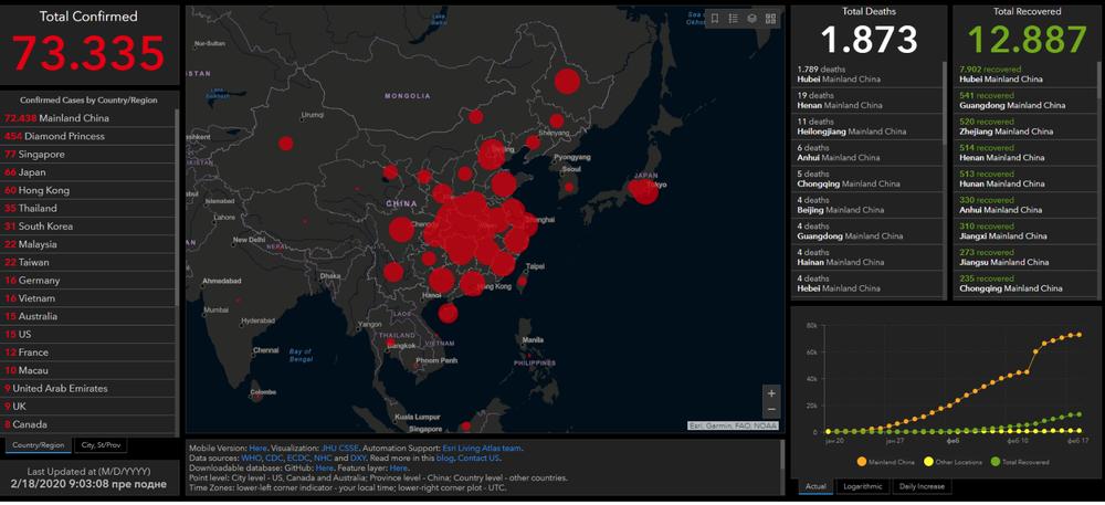 Univerzitet Džon Hopkins napravio je detaljan grafikon koji prikazuje kakva trenutno situacija vlada u svetu što se tiče ove epidemije