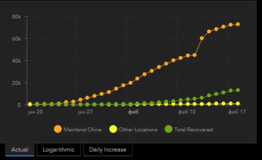 Tu se primećuje jedna pozitivna promena - dok se do 10. februara broj obolelih eksponencijalno uvećevao, od tog datuma vidi se da dolazi do manjeg porasta zaraženih, što može biti znak da se epidemija konačno stavlja pod kontrolu, i da je pronašo njen vrhunac: